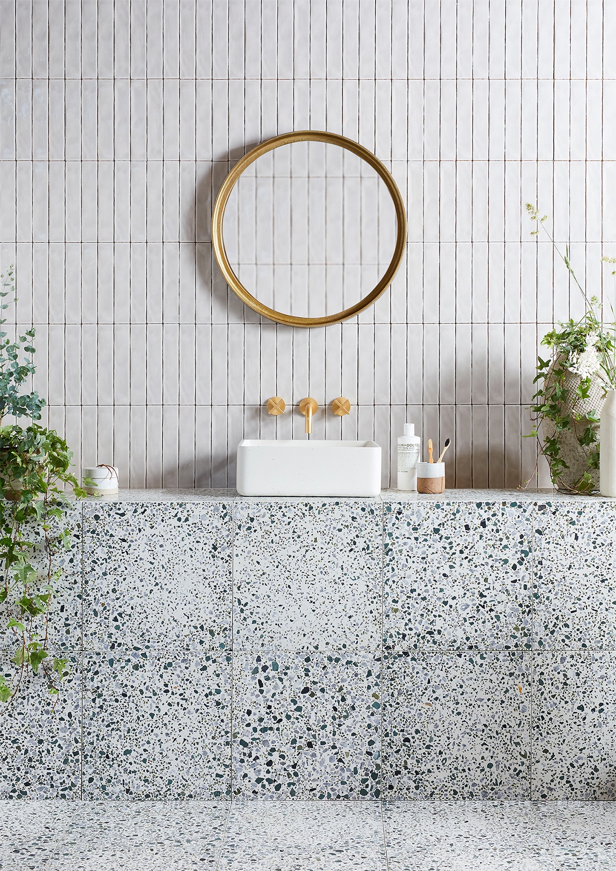 The new Bert & May encaustic tile, Marigold Maze One, is from the Mazes collection and nods to mid-century and Art Deco styling. Each tile measures 200mm by 200mm by 18mm and comes in three designs which you can use together to create a bespoke pattern in the perfect mx of classic and contemporary. The Bert & May Fennel Terrazzo tile provides a perfect way to introduce pattern into your bathroom with a less obvious repeat which is about surface interest, rather than bold lines.