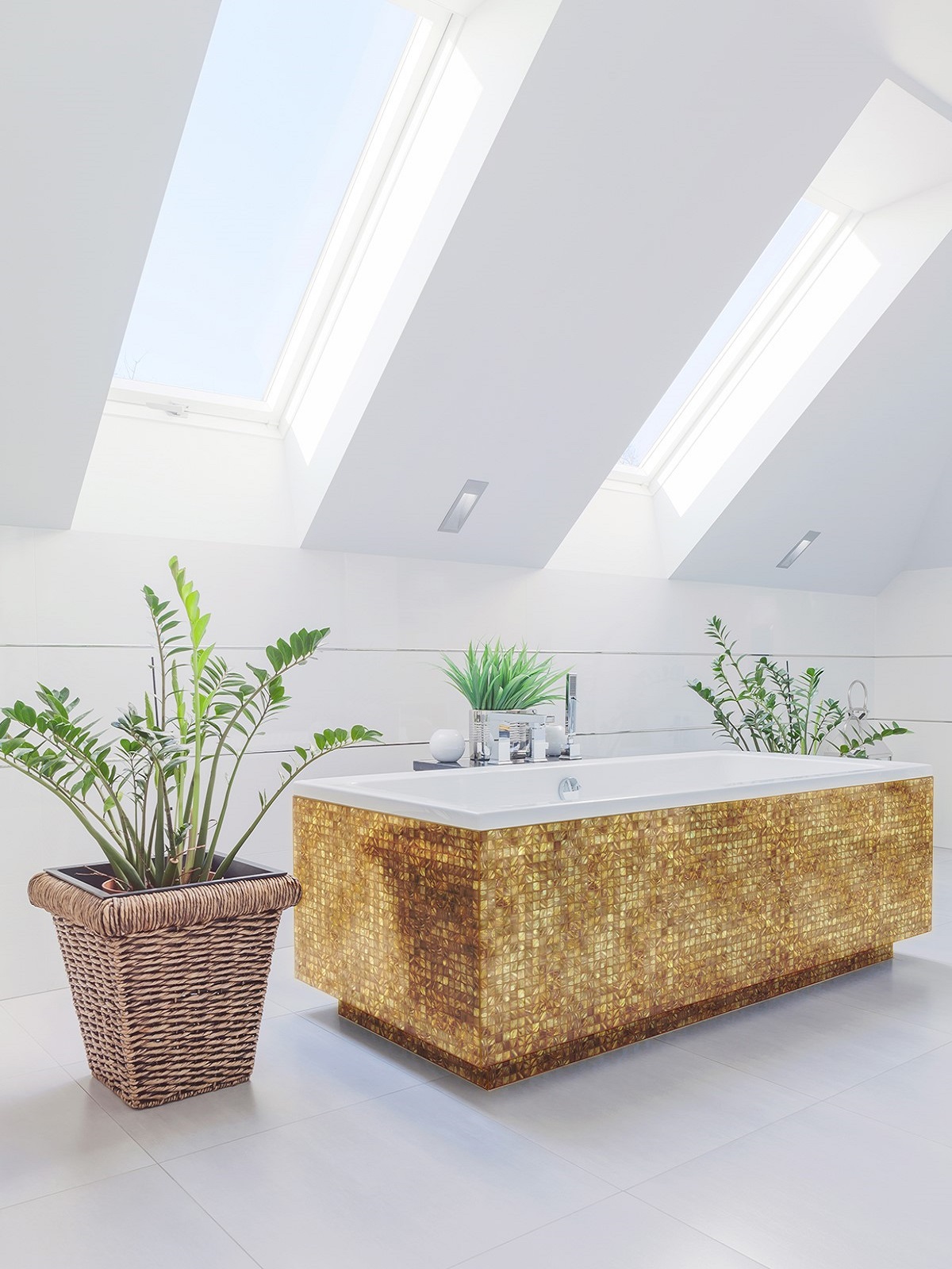 The new luxury Siminetti Freshwater Emerald Gold Square Mosaic tiles measure 25mm and introduces a reflective pattern along with a little glamour. In contrast, the matt surface of the Original Style Penshaw Yellow on Chalk tiles from the Odyssey collection injects a note of quiet calm.