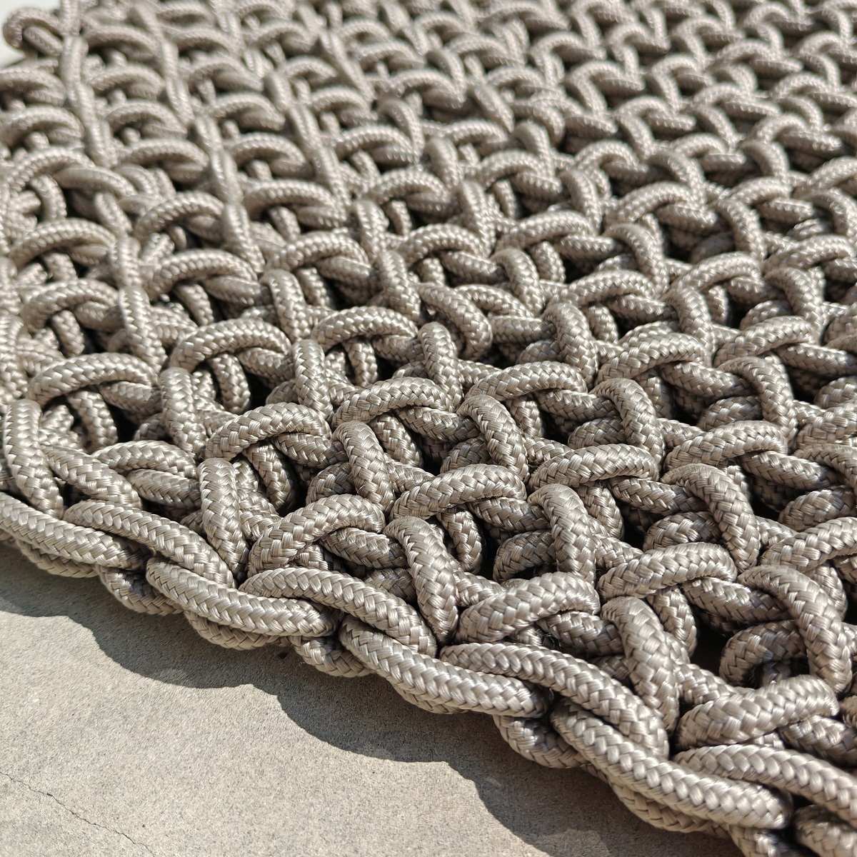 Mediterraneo boldly brings macramé into a new context: the floor. “In traditional macramé, the fibres used are typically cotton, linen or hemp,” explained the designer of the collection. “For this collection, we chose a technical yarn that closely resembles the look and feel of these natural fibres, but with enhanced performance for outdoor use.”