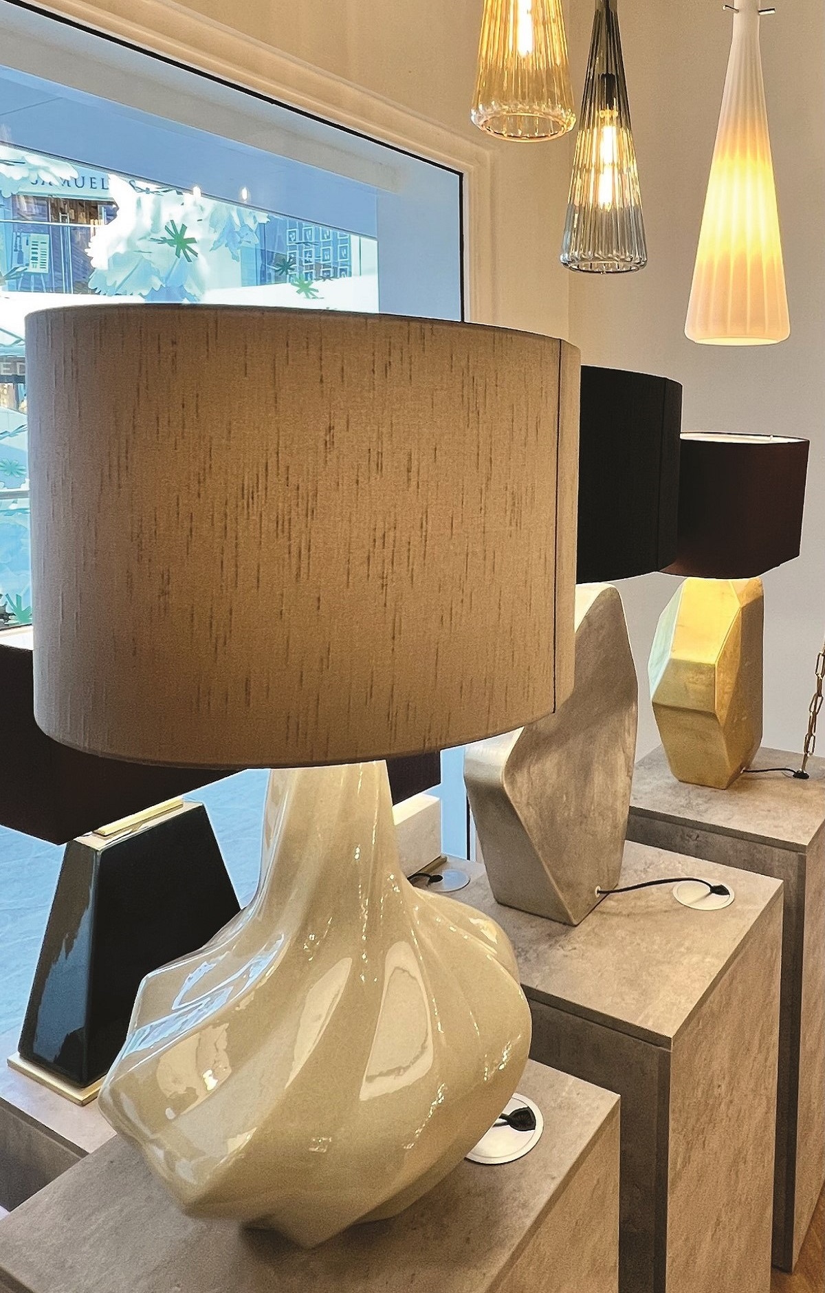 Starting on the table, designed using a muted colour palette the ceramic table lamps incorporate touches of gold and brushed silver finishes paired with beautiful silk, textured shades. This collection includes various geometric shaped bases which complement both contemporary and more traditional style interiors.