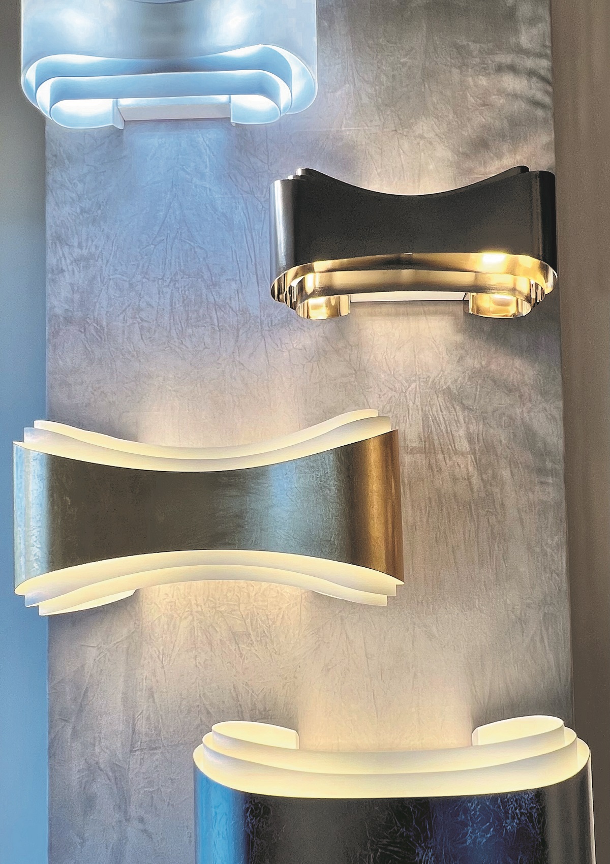 Moving on up the wall, the ‘Wave’ wall light is designed with soft elongated curves and is available in a number of exquisite finishes. The tiered design of these wall lights add depth and dimension as well as create a beautiful illumination of light.