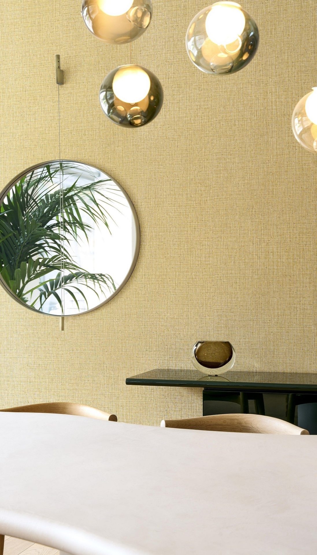 table and chairs with Pandan wallcovering by Arte