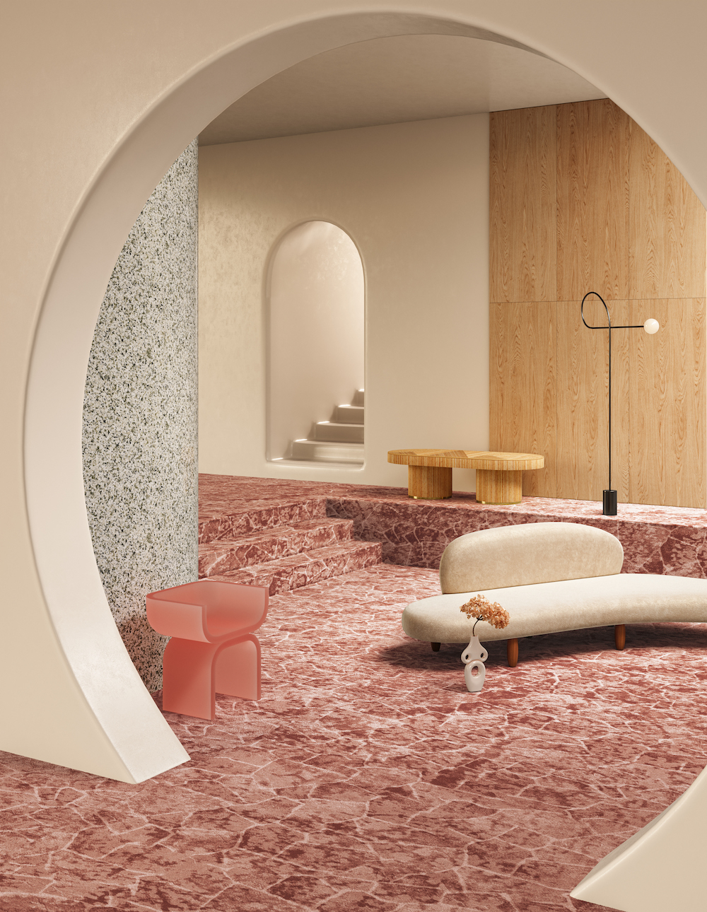 In bringing the collection’s launch to life, TSAR partnered with Italian image production studio Nova Visualis (@novavisualis) to create a series of digital vignettes that reflect the collection’s terrene ethos and intended end use. Nova Visualis, known for their creative direction and technical precision, designed five dynamic renders that imagine the collection in various trend-forward hospitality and residential environments. The end result is a suite of visual settings that evoke a transportive and serene experience.”