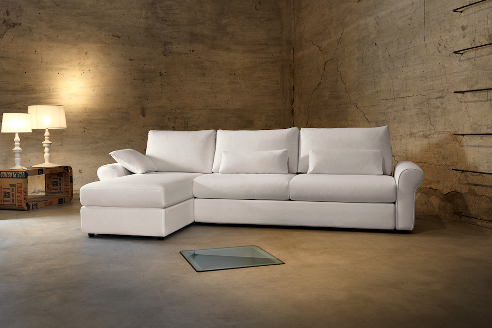 DOMINGO has a whole catalogue dedicated to the Lshape sofa bed. The idea is to start from one central standard sofa bed block and then add as many elements as your family needs to create your own unique sofa bed. Starting from a central 2 seaters sofa with bed you can then add a corner unit, the armrest of your choice, a long chaise on the side or …some hidden storage. You will then be able to create a sofa bed that is functional for you, that suits your lifestyle and fits perfectly in the space you have chosen.