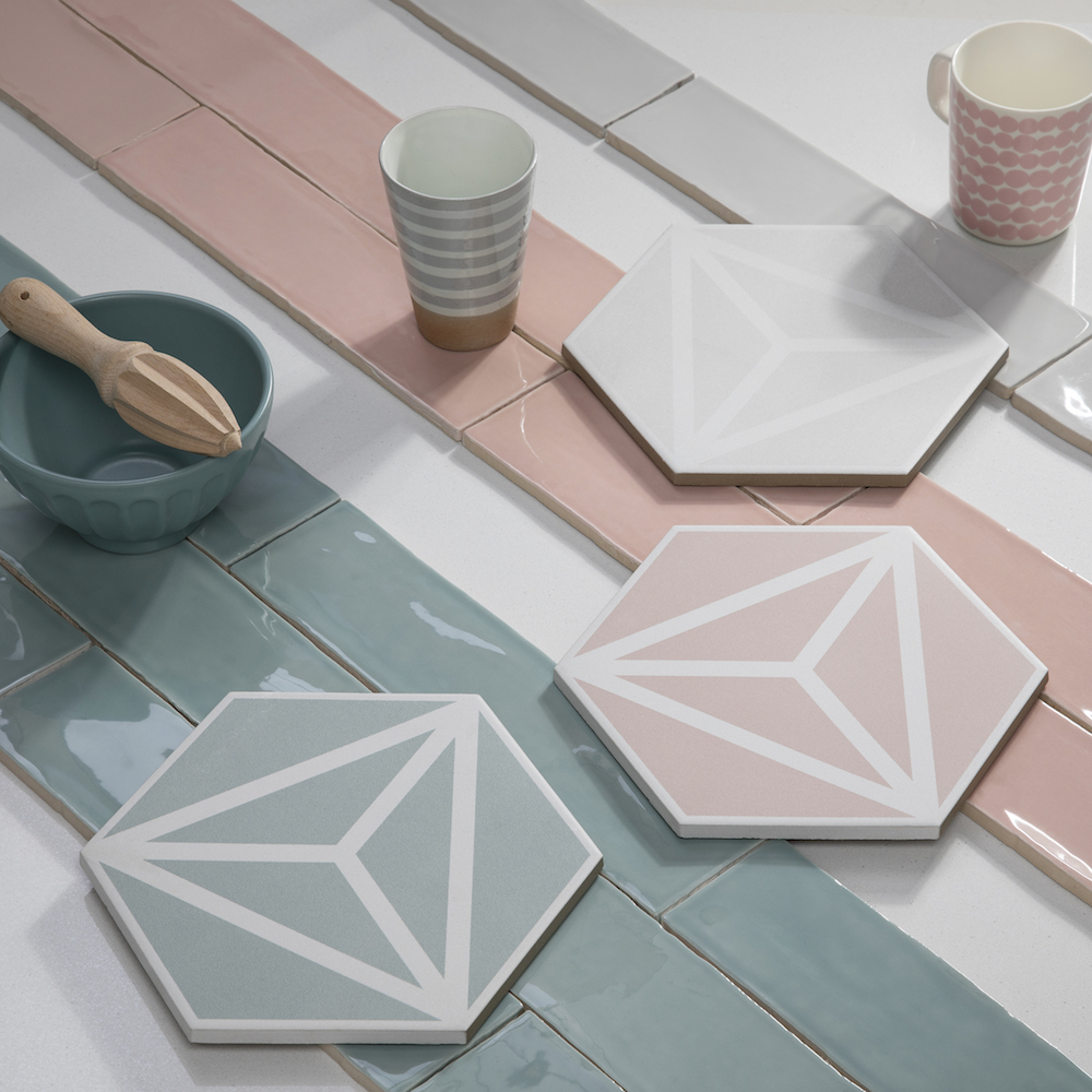 The Varadero patterned hexagon tile collection and the colourful Poitiers range are often specified thanks to their corresponding tones. From the cool mint hues and soothing blue shades to more neutral greys, the collections pair effortlessly. The contrast in the finish from glossy to matte and pattern to plain colour ensures the completed scheme will have the ideal balance of character and style whilst still co-ordinating exquisitely.