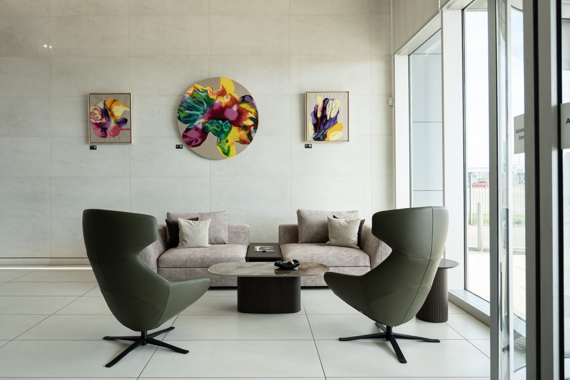 Danish design chairs in the Harrods aviation lounge, by BoConcept
