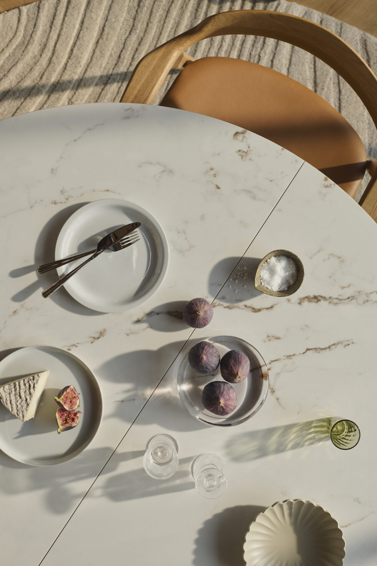 Ceramic surfaces used across collections like Santiago, Madrid, and Alicante offer another form of quiet resilience. Resistant to scratches, heat, and stains, these tables are built for the realities of hospitality without giving up the natural, stone-like texture designers crave.