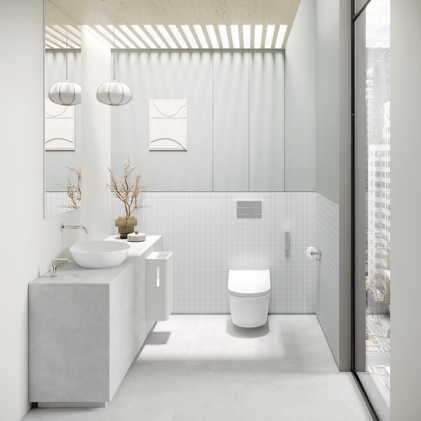 Guest bathrooms are trending more towards shower toilets with integrated intimate cleansing features that minimise the need for toilet paper. The latest models from TOTO are NEOREST WX and WASHLET RW. Once you approach the sensor-activated lid raises – and then the toilet flushes automatically when you walk away. WASHLET will determine how much water to use for the flush based on the amount of time you spend sitting on the toilet.