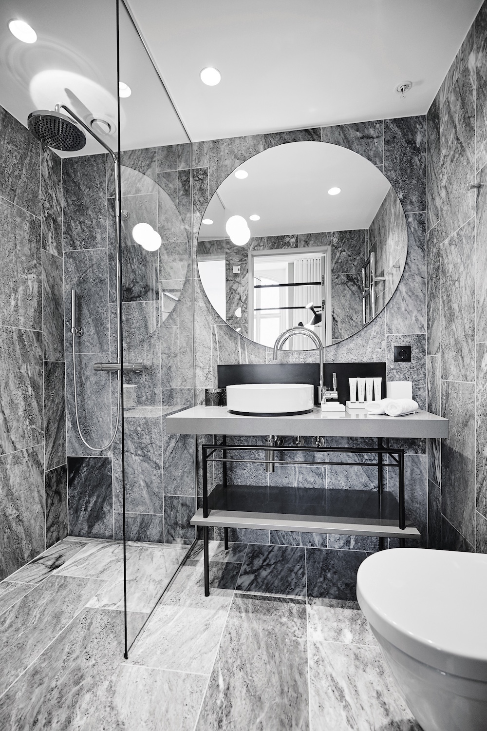 All hotels cover the practical requirements but the best do so with efficiency then add personal touches and elegance with style. Nowhere is this more apparent than in a hotel bathroom. The secret is in the choice of materials and tailor-made solutions and 100 of the bathrooms in the Nobis Hotel show that Unidrain must be one of their ‘secret’ ingredients. The shower cubicles are enclosed by enclosed by a sleek sheet of glass; the water falls from the oversized shower head bouncing on the tiles beneath, before disappearing into the bespoke drain.