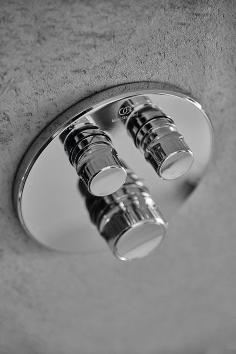 The thermostatic shower valve is powered by Ideal Standard’s pioneering Firmaflow Therm cartridge. Extremely durable, this ceramic cartridge disc ensures target temperatures are reached quickly and lasts twice as long as the industry standard. The cartridge also saves on energy consumption and helps to limit the amount of water dispensed without compromising on performance.