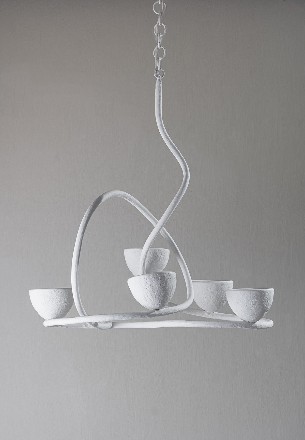 This striking reinterpretation from Porta Romana of the classic Compton family introduces a fluid, twisted form that brings a sense of movement and rhythm to the original’s sculptural purity. Part of the Abstraction collection launching in September 2025, the design is constructed from cast jesmonite and steel, finished with refined decorative detailing. Designed entirely in-house, each piece features a locally forged steel frame paired with jesmonite cups cast in the studio, then carefully hand-finished in Plaster White within the in-house painting workshop. Made to order, the piece can also be customised in any Porta Romana hand-painted finish, allowing for a truly bespoke result.