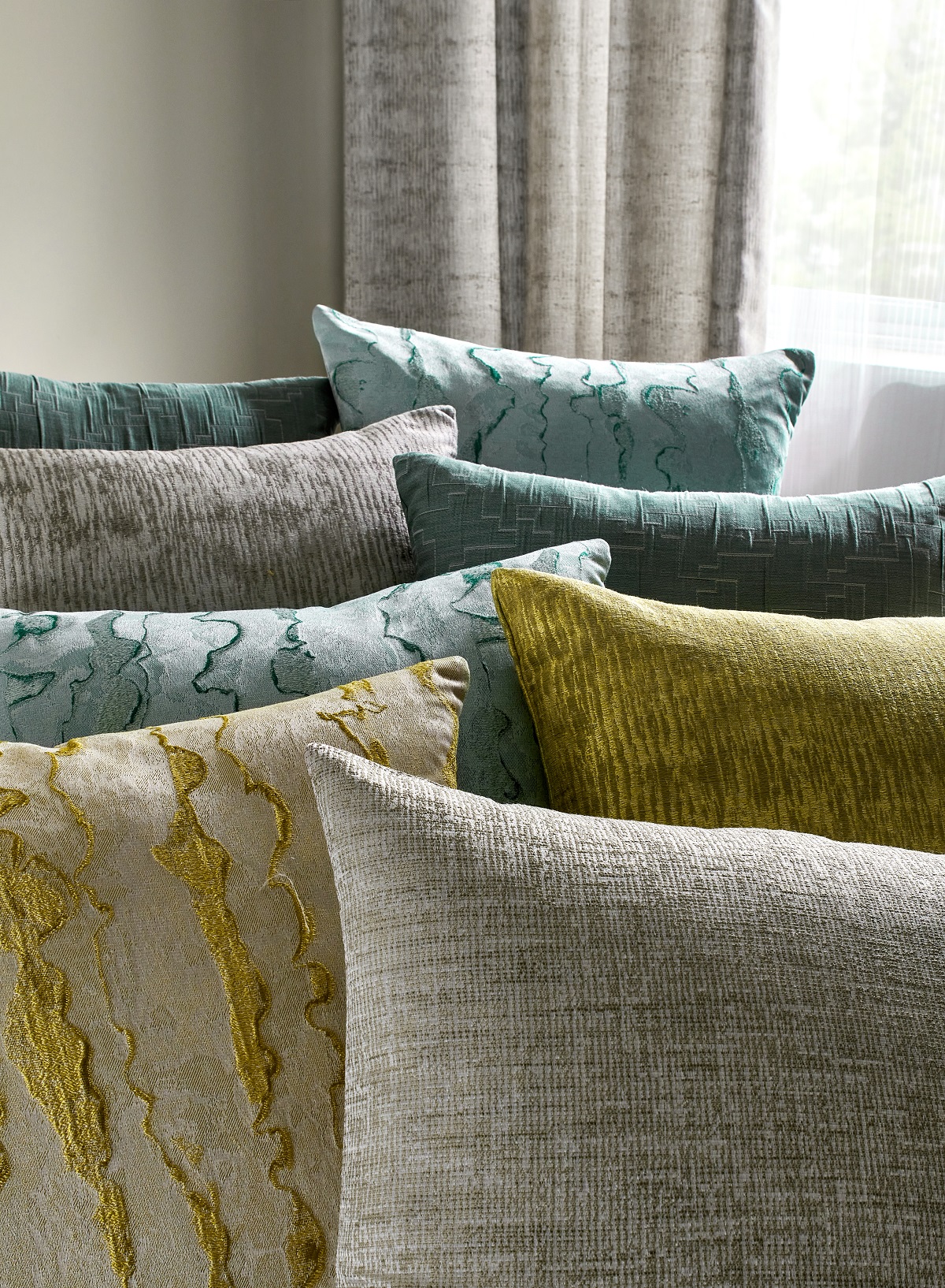 Ending on a sheer note — Tynan is a wide width sheers range comprising of Areo & Yara. Both plain designs come in a selection of 16 colours each including soft browns, stylish neutrals and mint blue tones. Both fabrics are washable and meet the UK, USA & IMO standards which makes these beautiful plains perfect for the hospitality, leisure and marine markets.