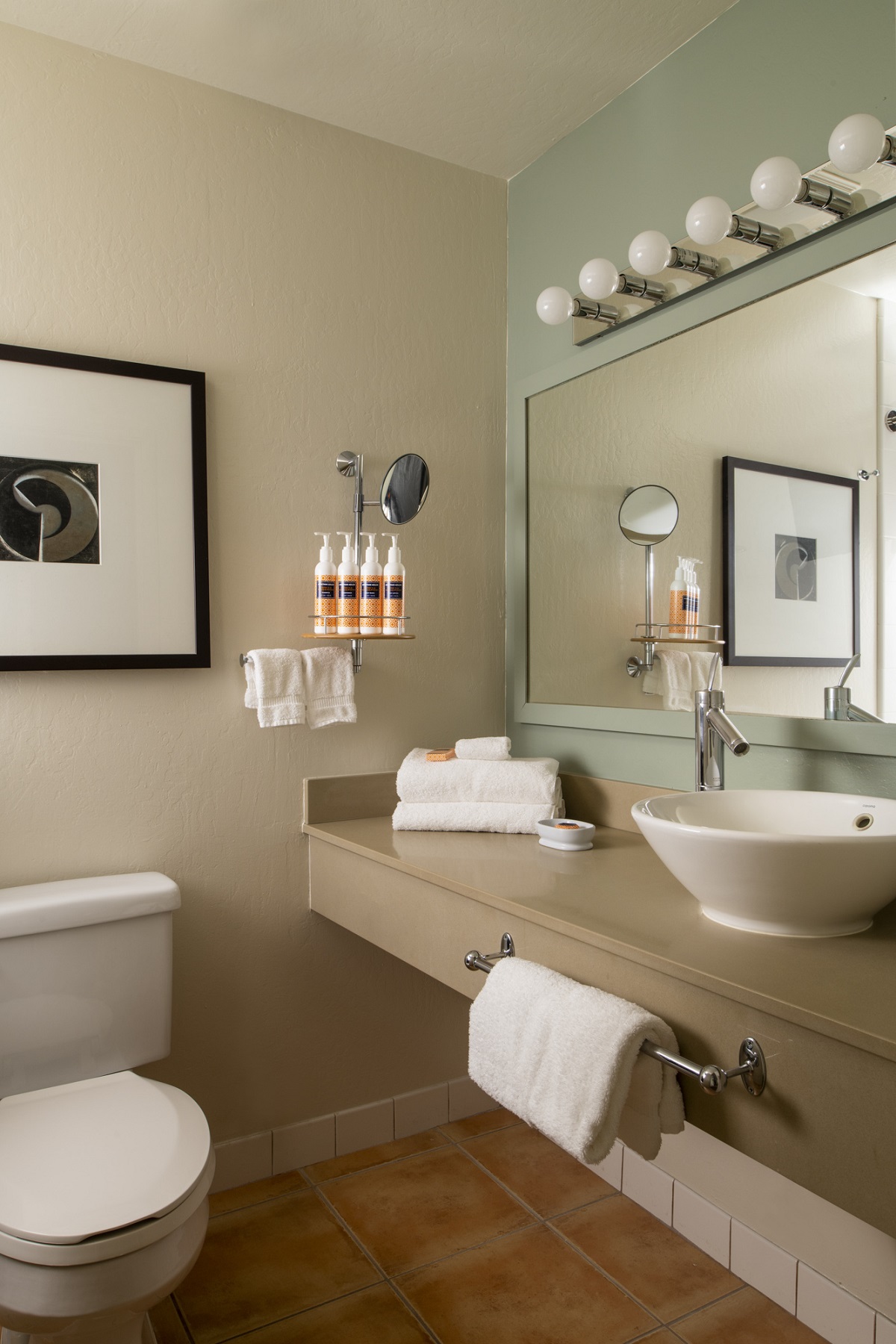 Not only did we do the full interior design, but led the exterior renovations with the AOR, did all of the artwork selections and procurement (even hand-framing the art ourselves), helped source and work with a small branding and graphics agency, and even helped make custom draperies with our vendor to reduce costs for ownership – including crafting a special beaded rope design. Most importantly, the literal blood, sweat, and tears spent on this first hotel project was worth every second and one that made the partners and I proud to see what was possible we could do together, and ultimately exciting to realize we could now start transitioning to larger hospitality projects.