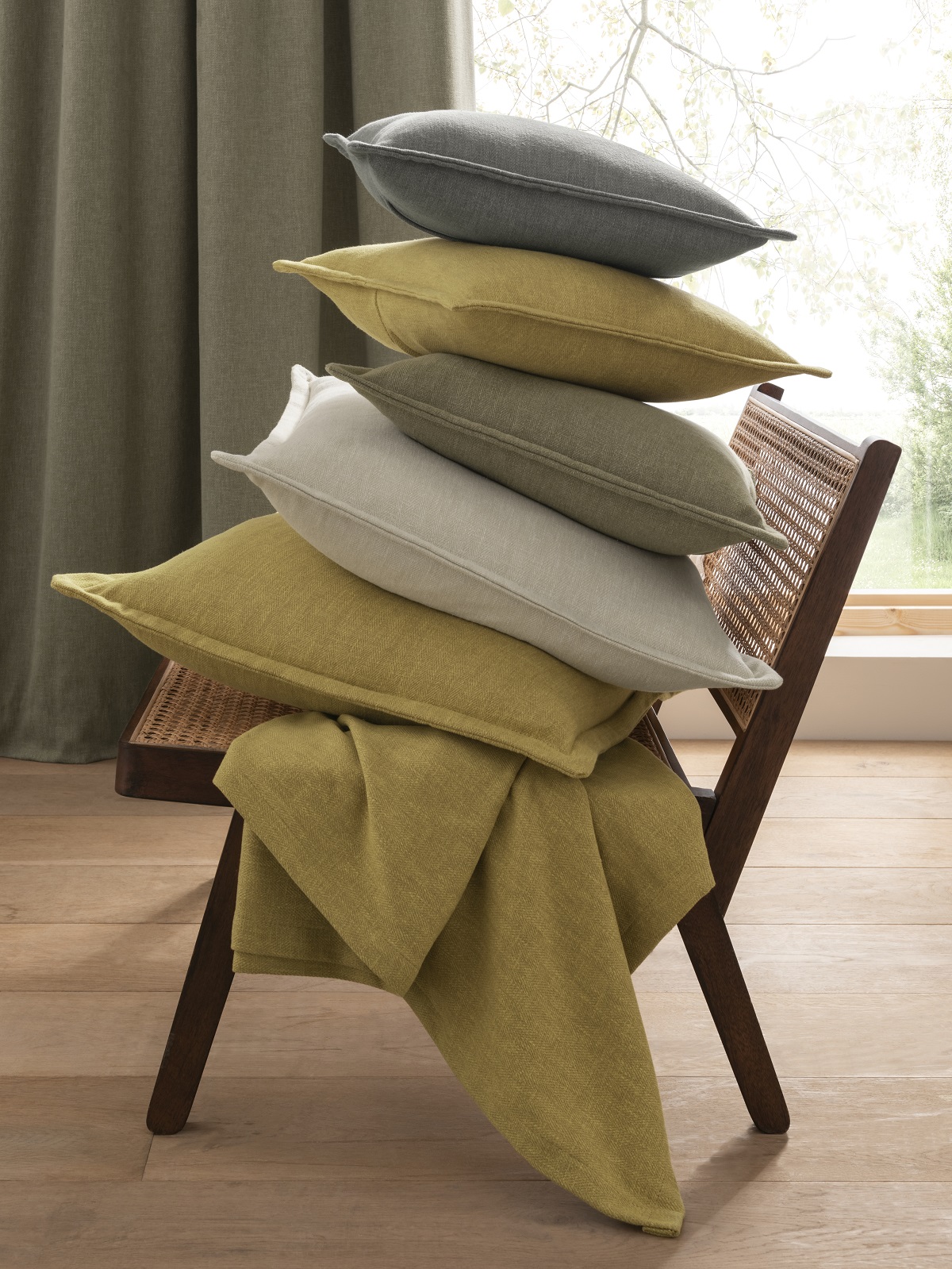 “We’d noticed the shade of orange that’s trending is a true orange,” added Manwaring. “I wanted a stronger neutral beige base with this colourway, complemented with warm charcoals, French blue with flecks of gold for highlights. In contrast, the Fall palette was inspired by strong images of nature. The charcoal and rust almost felt hyper-real being so simple, yet so beautifully balanced.
