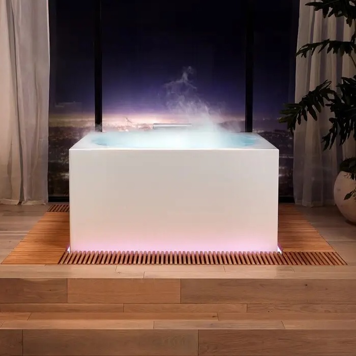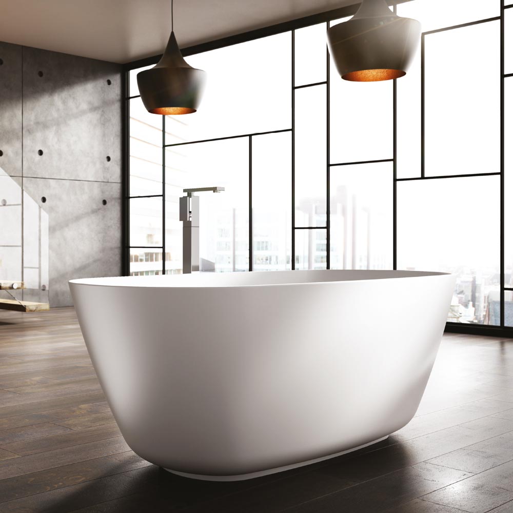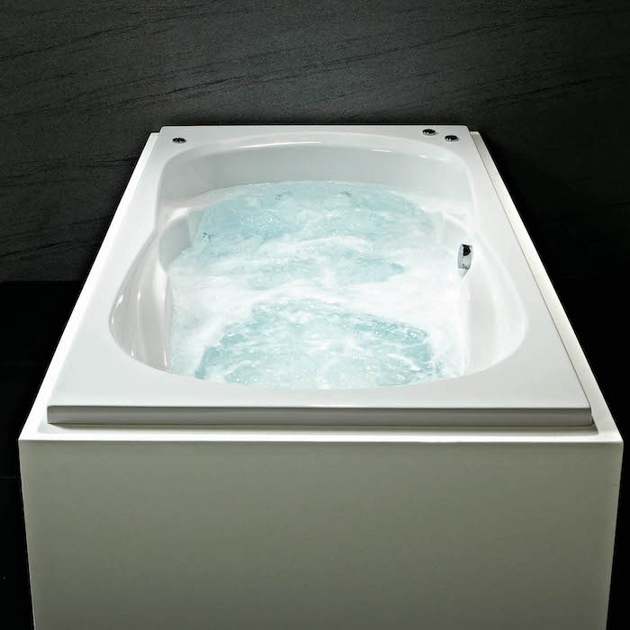 A further highlight in this price segment is the trapezoid built-in bathtub made from sanitary acrylic, available in three sizes, with the option of left or right corner versions. The bathtub provides a luxurious bathing experience with a comparatively low filling volume even on smaller floor plans. Rectangular built-in bathtubs in all standard sizes complete the range; the 1800 x 800 mm model is available as a two-seater. With depths of 40 or 46 cm, the bathtubs are comfortable whether sitting or lying. The bathing experience can be further enhanced by the optional whirl function with its beneficial massage effect. Bathtub handles, can be ordered separately and are installed at the factory, improve safety.