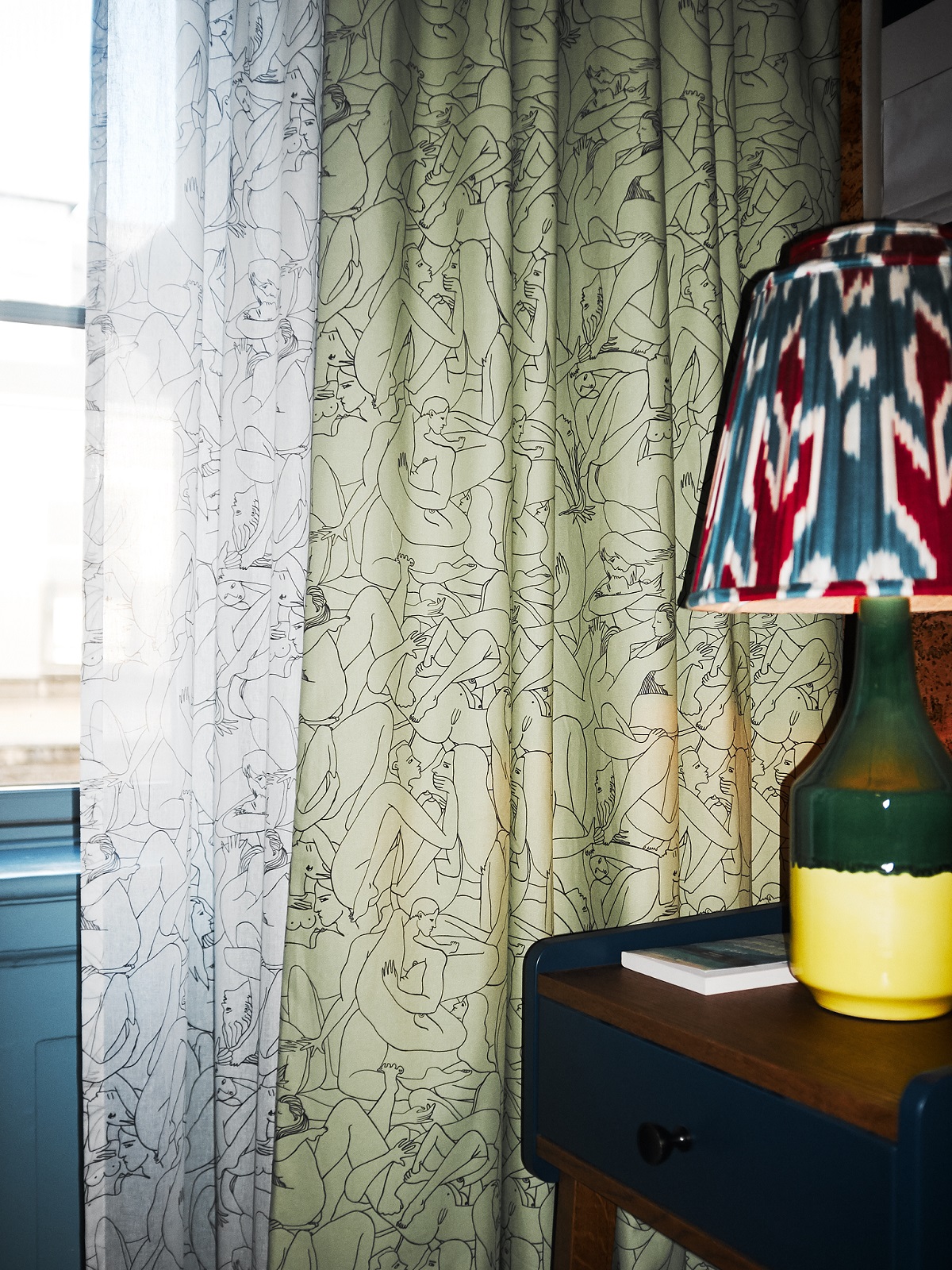 The more romantic penthouse suites have sofas, panoramic views and large bathrooms. Each room has its visible personality: new, classic and vintage furniture, patterned fabrics, walls with paintings, selected art books, magazines, printed fabrics, and lamps. Guests will encounter Thonet Bentwood chairs, Prouvé chairs, locally handmade wooden tables, Bauhaus-inspired trolleys, Michael Anastassiades lamps, hand-stitched leather seats and Helle Thygesen Art & Antiques handmade lampshades. All these elements contribute to the layered design of the hotel that transforms each space into an individual statement.