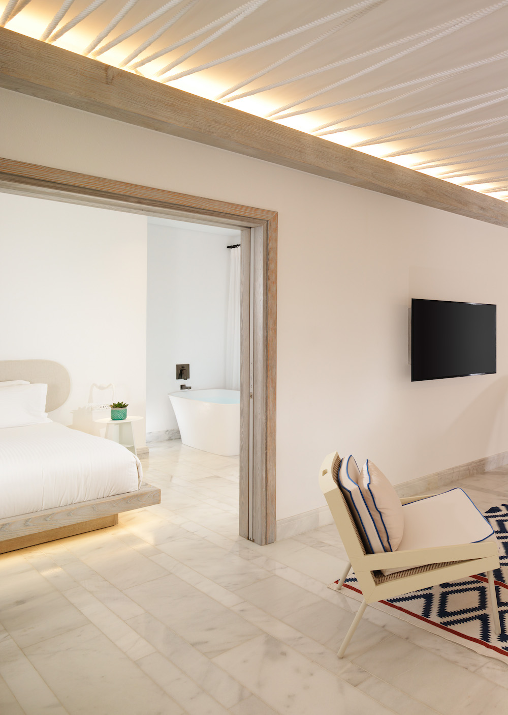 As designers begin to open up these spaces and physically bring the bathtub or basin into the bedroom, manufacturers are also re-imagining product forms and providing design options that align with the softer aesthetics of a bedroom.