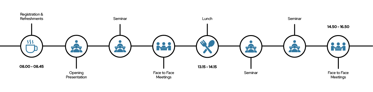 The main focus of the event is pre-arranged, face-to-face meetings between attending delegates (like yourself) and key industry suppliers. You will have the opportunity to network with peers, attend topical seminars and update yourself with industry knowledge and trends. When you arrive at the event, you will be shown the meeting area and your itinerary. Meetings are hosted at clearly labelled supplier stands; all you need to do is navigate your way to the chosen supplier stand at your appointment time.